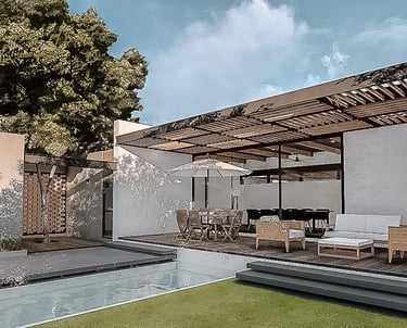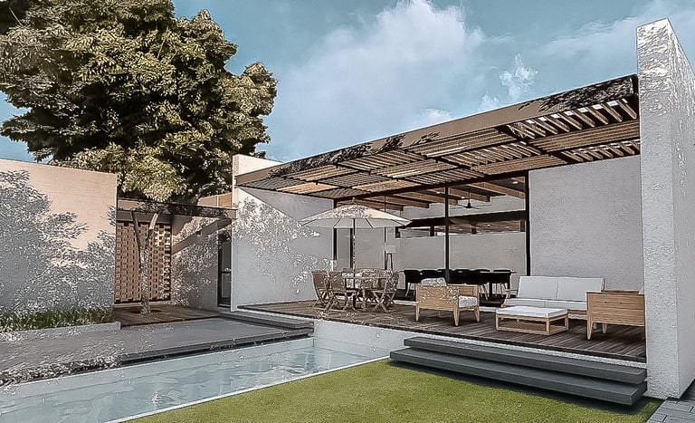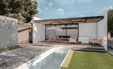 EL PROYECTO CONSTA DE 2 RECÀMARAS CON BAÑO , SALA, COCINA, COMEDOR, CARRIL DE NADO DE 2.00 X 8.00 MTS, TERRAZA,JARDÍN ,ESTACIONAMIENTO PARA 2 VEHICULOS.