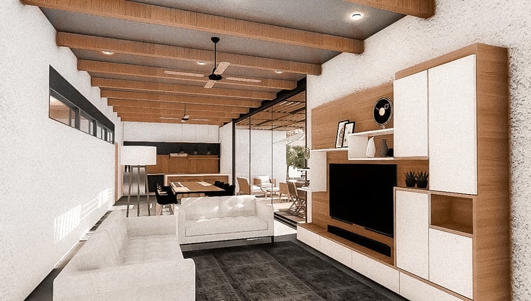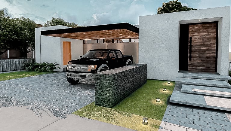 Proyecto de casa de descanso, desarrollado en un terreno de 400 m2 y un total de 180 m2 de construcción.