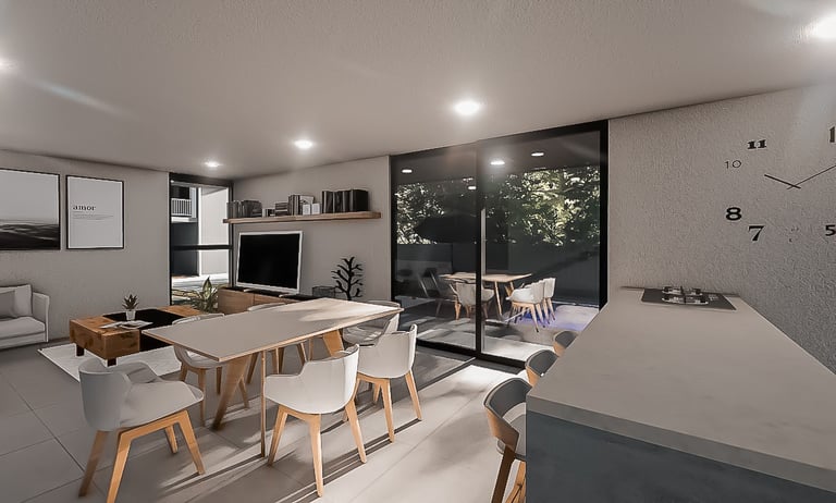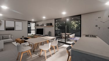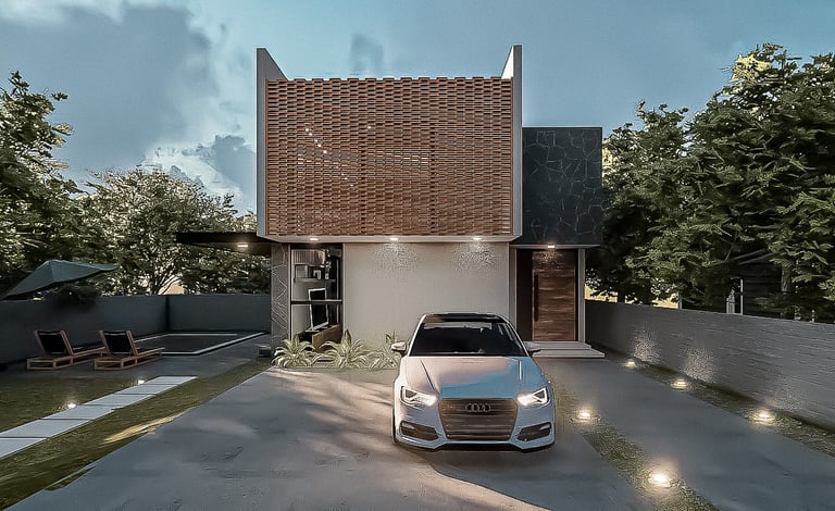 El proyecto consta de 2 recámaras con baño y balcón, 1 baño completo extra, sala, cocina, comedor, jardín, alberca de 3.00 x 6.00 m, terraza y estacionamiento para 2 vehículos..