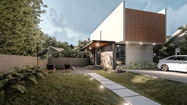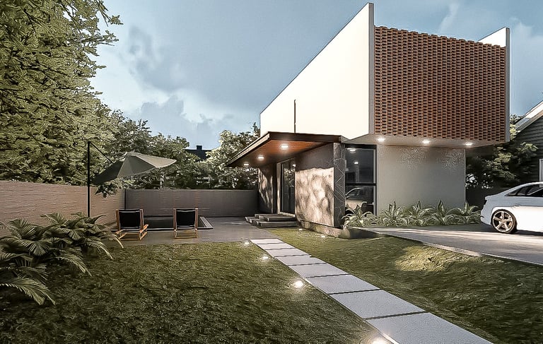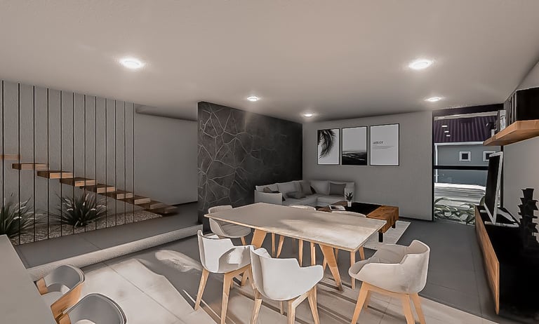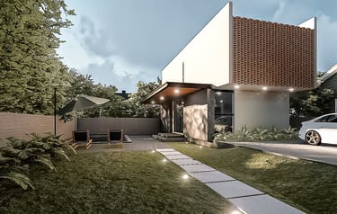 Proyecto de casa de descanso, desarrollado en un terreno de 250 m2 y un total de 150 m2 de construcción.