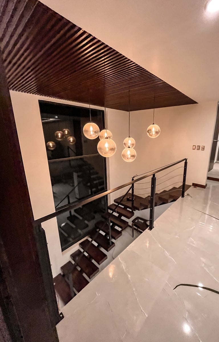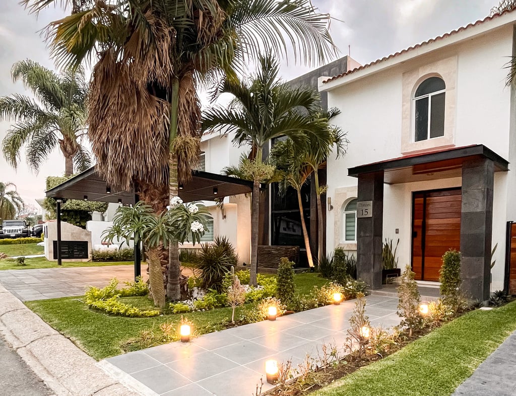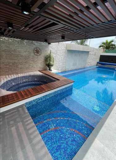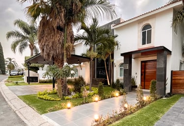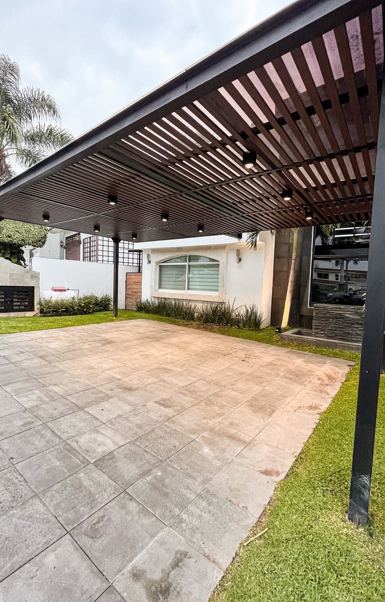Se remodela de manera integral espacios diversos como son recámaras, baños, cocina, sala, patio, escaleras, estacionamiento y alberca; se integran pergolados, jacuzzi, se hace cambio general de acabados, lámparas, cocina integral y baño con sauna.