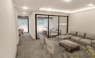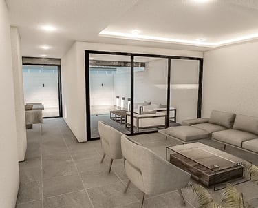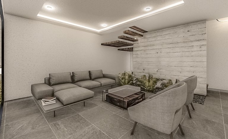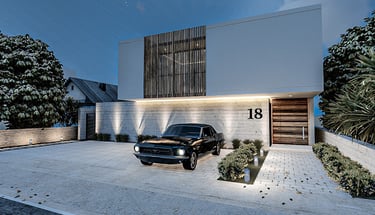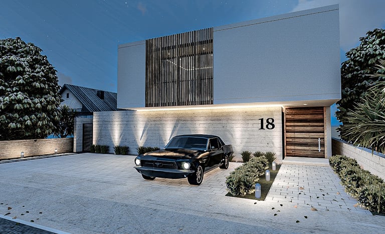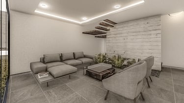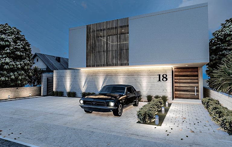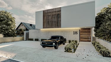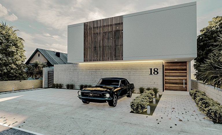 Proyecto de casa residencial, desarrollado en un terreno de 350 m2 y un total de 220 m2 de construcción.